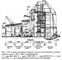 Крупноблочный монтаж зданий может выполняться различными методами, которые отличаются применяемым оборудованием и расположением конвейерной линии. Основные методы монтажа. 1. Блоки покрытия укрупняют на общестроительном конвейере до полной строительной готовности и подают в рабочую зону краном. Поднимают и устанавливают блоки краном, расположенным в пролете, подают блоки к крану по рельсовым передаточным путям, являющимся продолжением путей конвейера […]