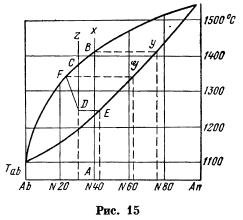 Теперь перейдем к остальным плагиоклазам — от № 15 олигоклаз-альбита и до чистого анортита № 100. Сингония, формы, спайность и пр. — см. при олигоклаз-альбите и альбите. Преломление повышается к анортиту, двупреломление также, вообще говоря, повышается к анортиту и не характерно. Ниже приводятся две таблички, характеризующие плагиоклазы в отношении их светопреломляющей способности, причем надо иметь […]