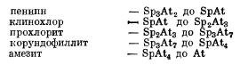 Следующей идет опять-таки группа минералов, объединяемых под названием хлориты. Химически хлориты рассматриваются различно. По представлению Чермака, все хлориты строятся из серпентина Sp—H4Mg3Si2O9 и амезита At (в природе в чистом виде встречен, кажется, только раз) — H4Mg2Al2SiO9, причем MgO замещается частично FeO, a Al2O3 — Fe2O3 и Cr2O3 и тогда: Уинчелл строит хлориты из четырех молекул, […]