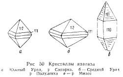 Анатаз должен быть отнесен к числу довольно распространенных минералов россыпей, хотя встречается в них значительно реже рутила и обычно спорадически, не образуя заметных концентраций. Он встречается преимущественно в виде хорошо образованных кристалов и их обломков, реже в виде спайных осколков и неправильных угловатых или в различной степени окатанных зерен. В химическом отношении обычно соответствует формуле […]