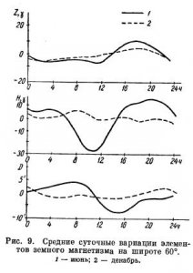 Изменения магнитного поля Земли на протяжении многих лет определяются в результате непрерывных записей элементов земного магнетизма в магнитных обсерваториях и путем повторных наблюдений через каждые 3—5 лет на ряде опорных точек. После вычисления средних значений каждого элемента в одной и той же точке для ряда лет вычисляется среднее изменение каждого элемента за один год. Вычисленная […]