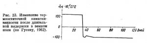 Ранее было показано, что при намагничивании породы во время ее остывания в слабом магнитном поле возникает высокая и устойчивая остаточная намагниченность. Этим и объясняется естественная остаточная намагниченность Jn горных пород, что хорошо подтверждается, в частности, намагниченностью вулканических лав нашего времени: остывшие лавы действующих вулканов обладают остаточной намагниченностью в десятки и даже сотню раз больше индуцированной […]