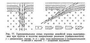 По зонам тектонических нарушений нижняя граница выветривания может опускаться на большую глубину, образуя линейно вытянутые «языки» площадной коры. Распространение линейной коры на глубину ограничивается базисом эрозии, а ее алюмосиликатный состав, строение и физические свойства в основе своей подобны таковым для связанной с ней площадной коры, так как оба типа коры выветривания образуются в процессе кислотного […]