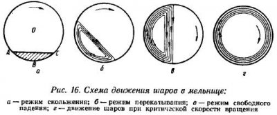 Дробление и истирание частиц, а также их перемешивание достигаются движением размалывающих тел. В шаровой мельнице, где в качестве размольных тел в основном используются шары, характер их перемещения зависит от числа оборотов барабана. Ta скорость вращения барабана, при которой размольные тела вращаются вместе с барабаном, прижатые к стенке под действием центробежной силы, называется критической. Критическое число […]