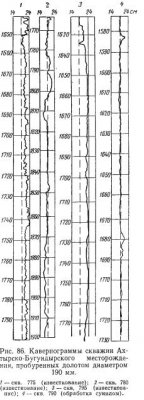 Под устойчивостью стенок скважин обычно понимают сохранение диаметра ствола скважины близким к номинальному. Для количественной оценки устойчивости используется коэффициент устойчивости Кс, представляющий собой отношение фактического объема Vф интервала ствола скважины к номинальному объему этого же интервала. Величину Кс можно определить по формуле где Dср и Dн — средний фактический диаметр интервала скважины и номинальный диаметр. […]