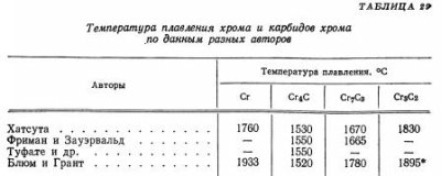 Исследуя получение безуглеродистых металлов, Муассан заметил, что окись хрома легко восстанавливается в электрической дуговой печи, давая сильно науглероженный металл. Повторная переплавка позволила получить кристаллический продукт, содержавший 86,72% Cr и 13,21% С, что отвечало по составу карбиду Сr3С2 (теоретическое содержание углерода 13,33%). При нагреве чистого хрома в графитовом тигле до высокой температуры Муассан получил карбид другого […]