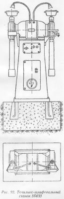 Станок — двустороннее точило с различными приспособлениями (рис. 92), Основная часть станка — это головка, представляющая собой двухскоростной электродвигатель, вал которого является шпинделем станка. Подшипниковые опоры — сдвоенные радиально-упорные; шарикоподшипники высокой точности с выбранными осевыми люфтами. Уплотнение образуется с наружных сторон осевыми лабиринтными уплотнениями, с внутренних сторон жировыми канавками. В качестве привода использован встраиваемый двухскоростной […]