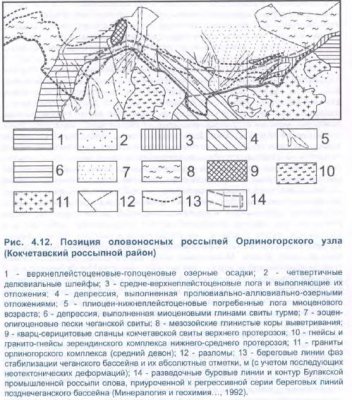 Указанная россыпная мегапровинция в тектоническом отношении соответствует области древних аккреционных поясов Восточного Казахстана преимущественно каледонского возраста, с включенными в них жесткими блоками Кокшетауского, Утутаусского и др. массивов, а в геоморфологическом отношении — область низкогорья и мелкосопочника с островными низкими горами, соответствующими гранитоидным массивам часто кольцевого строения (рис. 4.10). Это типичная полиминеральная провинция, облик которой определяют, […]