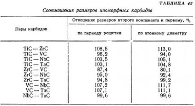 Карбид титана — карбид циркония. Несмотря на относительно большую разницу в величине периодов решеток, достигающую 8,2%, в этой системе наблюдается неограниченная растворимость. В исследовании Новотного и Кдффера, по данным измерений периодов решеток образцов состава 25% карбида циркония и 75% карбида титана с 0,5% кобальта, полученных двухчасовым спеканием в вакууме при 1600°, была ясно обнаружена гетерогенная […]