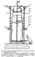 Hecyщая конструкция лифта представляет собой цилиндр из стали толщиной 8—10 мм, диаметром 3,2 м и высотой до 66 м. К стволу лифта примыкает шахта лестниц, связанная переходными площадками и мостиками с пылеуловителем, литейным двором и колошниковой площадкой. Обычно лифт устанавливают из двух полностью собранных секций, если условия монтажной площадки позволяют произвести их укрупнительную сборку. Сначала […]