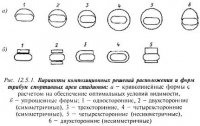 Объемно-планировочные решения стадионов определяются в основном положением трибун относительно ядра стадионов и их формой. В практике строительства стадионов определились в основном четыре варианта организации зрительских трибун относительно спортивного ядра стадиона: одностороннее, двухстороннее, трехстороннее и четырехстороннее (рис. 12.5.1). Каждый из этих вариантов имеет множество подвариантов. Например, вариант двухстороннего размещения трибун имеет вариант асимметричной композиции, то же […]
