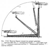 Монтаж мачт наращиванием в проектном положении ведут, как правило, с помощью специальных самоподъемных кранов и вертолетов, в отдельных случаях используют методы поворота вокруг шарнира и подращивания. Работы по монтажу мачтовых сооружений начинают после выполнения подготовительных работ на площадке, включающих помимо общей инженерной подготовки стройплощадки сооружение якорей для закрепления монтажных лебедок, отводных блоков, временных расчалок, устройства […]