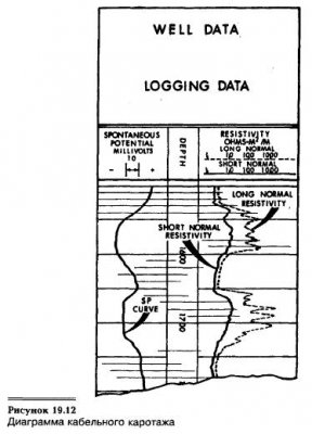 Первым видом кабельного каротажа был электрический каротаж, при котором измерялось удельное сопротивление. Вверх по стволу скважины перемещали электрический каротажный заряд, снабженный электродами, соприкасающимися с породами по стенкам скважины (см. рис. 19.13). Сквозь породу пропускали электрический ток и измеряли удельное сопротивление (R) породы и пластовых флюидов. Часто проводилось измерение нескольких видов удельного сопротивления. «Короткое» сопротивление фиксировали […]