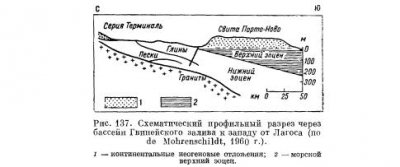 Западно-Африканский бассейн занимает крайние западные прибрежные части Сахары и Судана и располагается на территории Испанской Сахары, Мавритании, Гамбии и Сенегала. С востока бассейн обрамлен невысокой горной цепью, сложенной докембрийскими метаморфическими и кристаллическими породами и вытянут в субмеридиональном направлении, т. е. вдоль границы бассейна. С юга бассейн ограничен высокогорным плато горы Лома (1900 м), сложенным древними […]