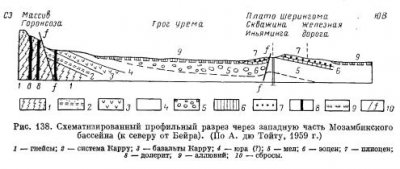 Мозамбикский возможно нефтегазоносный бассейн расположен в юго-восточной части африканского материка на территории главным образом Мозамбика. Незначительная южная и северо-западная части бассейна заходят соответственно в пределы Южно-Африканской респ. (Наталь) и Южной Родезии. Мозамбикский бассейн на севере ограничен плато Мозамбик, средняя высота которого составляет 700 м; отдельные вершины и горные цепи поднимаются до 2 км. Плато сложено […]