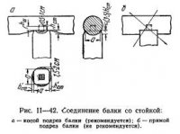 Общие указания. Врубками называют весьма разнообразные по форме соединения, в которых происходит непосредственная передача усилия от одного деревянного элемента другому, без участия в этой основной работе иных видов связей. Устанавливаемые во врубках связи (болты, скобы, хомуты и т. п.) играют второстепенную роль, препятствуя взаимному смещению соединяемых элементов под влиянием случайных, непредусмотренных расчетом нагрузок во время […]