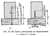 Работа на выдергивание гвоздей и винтов встречается в прикреплениях подшивок, подвесок, в отдираемых концах досок у стыков и других подобных случаях. He допускается учитывать расчетом работу гвоздей или винтов, поставленных с торца, то есть забитых или завинченных вдоль волокон, и работу гвоздей, поставленных в предварительно рассверленные отверстия. Также не допускается учитывать в расчетах работу на […]