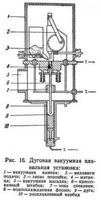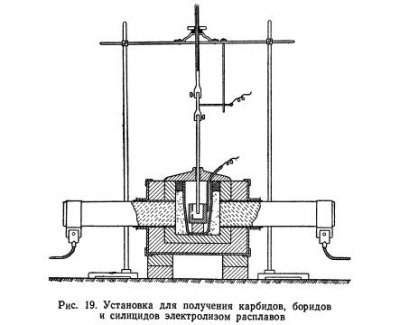 Температуры образования и плавления карбидов тугоплавких металлов настолько высоки, что получение их в расплаве возможно только в электрической дуговой печи, печи Таммана или высокочастотной. Эти температуры лежат в пределах 2500—4000°, т. е. выше температуры разложения некоторых карбидов; поэтому нередко при плавке карбидов тугоплавких металлов получают смесь карбидов металла и элементарного углерода. В связи с этим […]
