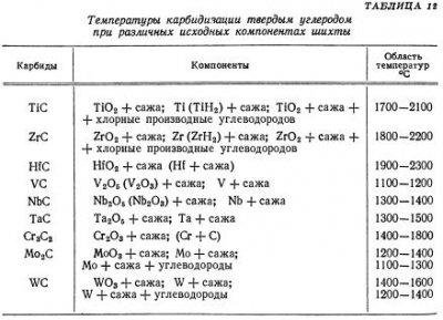 Большинство металлов и их окислов взаимодействует с углеродом при температурах значительно более низких, чем температуры их плавления. Поэтому чистые неразлагающиеся карбиды могут быть получены уже при температурах 1200—2200°. Этот способ получения карбидов в настоящее время наиболее распространен и используется для промышленного приготовления карбидов вольфрама, титана, молибдена, тантала, ванадия и других применяемых в производстве твердых сплавов. […]