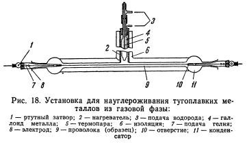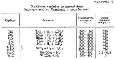 В настоящее время карбидизация твердым углеродом и химическое выделение карбидов — наиболее распространенные методы приготовления технически чистых карбидов в больших количествах. Осаждение из газовой фазы представляет, однако, возможность получения тугоплавких карбидов, нитридов, боридов и силицидов высокой степени чистоты. Процесс заключается в одновременном разложении и взаимодействии газообразной смеси, состоящей из галоидного соединения металла, окиси углерода и […]