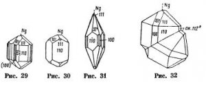 Еще один сравнительно редкий минерал, но очень важный в практическом отношении — это касситерит, или оловянный камень, — SnO2. Иногда с примесью железа и редких земель. Касситерит тетрагональный. Он дает короткие призмы и бипирамидальные кристаллики, как на рис. 29 и 30, также нередко встречается в округленных и угловатых зернах. Иногда касситериты встречаются в виде лейсточек, […]
