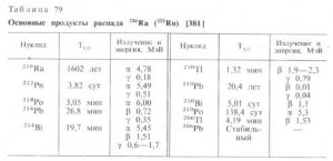 Атом Ra (5f06d07s2) представлен нестабильными радиоактивными изотопами. Наиболее распространены 224Ra, 226Ra и 228Ra. 226Ra имеет самый большой период полураспада (Т1/2 = 1,62*10в3 лет) и является α-(4,76 МэВ) и γ-излучателем (0,187 МэВ), продуктом стадийного распада 238Ra, вероятно, через ионий 230Th (7,8*10в4 лет). В свою очередь 226Ra переходит в 222Rn (Т1/2 = 3,8 сут.). 223Ra ← 235U; […]