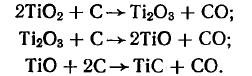 Карбид титана получают прокаливанием в водородной среде или вакууме при высоких температурах (2000—2200° С) смеси двуокиси титана с сажей. Карбид титана образуется по следующей суммарной реакции. Процесс карбидизации протекает через три последующие стадии: Указанные стадии предопределяют сложность образования карбида титана и требуют строгого соблюдения технологического режима, чтобы все стадии реакции протекали до конца с последовательным […]