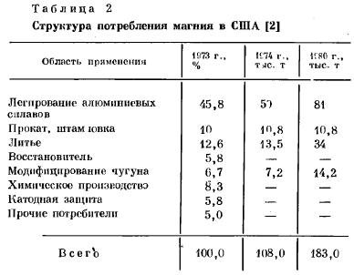 Co времени начала промышленного получения магния на протяжении нескольких десятилетий объем его производства и потребления сильно колебался в зависимости от военной конъюнктуры, поскольку магний имел почти исключительно стратегическое значение. С конца 50-х годов наблюдается сравнительно стабильный рост производства и потребления магния (в последние годы он несколько замедлился в связи с общим экономическим спадом на Западе), […]