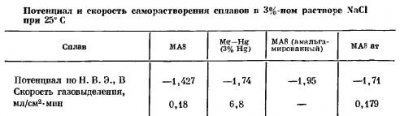Известно, что ртуть при использовании ее в качестве легирующего компонента сплавов или при введении ее в электролит в виде растворимых солей приводит к снижению потенциала магния. Однако приготовление литых магниево-ртутных сплавов связано с большими трудностями вследствие значительной летучести ртути. Нами исследовалась возможность приготовления магниево-ртутных сплавов методом амальгамирования с последующей термодиффузионной обработкой листового магниевого сплава МА8. […]