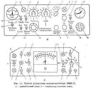 1. Назначение, принцип работы и краткая техническая характеристика прибора. Аэромагнитометр АММ-13 предназначен для непрерывной регистрации с самолета приращения модуля полного вектора T напряженности земного магнитного поля. Принцип работы показан на рис. 10, а. Магниточувствительный блок магнитометра состоит из одного измерительного и двух ориентирующих каналов, датчиками которых являются феррозонды. Обмотки возбуждения феррозондов питаются от блока питания […]