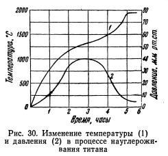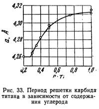 На рис. 31 показана часть диаграммы состояния титан — углерод. В этой системе имеется лишь монокарбид титана с кубической гранецентрированной решеткой по типу NaCl (B1). Соединение Ti2C, аналогичное подобным же карбидам вольфрама и молибдена, с гексагональной компактной решеткой, было обнаружено Якобсоном и Вестгреном. Бургере и Базарт полагают более вероятным образование раствора титана в TiC. Точные […]