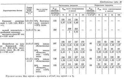 Предел прочности при изгибе имеет большое значение для конструкций, подвергающихся изгибающим усилиям (балки, прогоны, панели перекрытий). Эта характеристика достаточно хорошо изучена для бетонов нормального твердения. Влияние автоклавной обработки на предел прочности при изгибе проверялось нами на бетоне состава 1:2, 34:3,75 с В/Ц = 0,55 при расходе цемента 320 кг/м3. Бетон приготовлялся пластичной консистенции удобоукладываемостью 20 […]