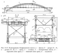 Основными несущими элементами в подобных мостах служат арки, передающие на опоры не только вертикальное давление, но и распор, а при отсутствии шарниров в опорных сечениях — также изгибающие моменты. Наличие распора и опорных моментов приводит к уменьшению изгибающих моментов в арке по сравнению с однопролетной балкой той же длины. В силу этого поперечные сечения оказываются […]