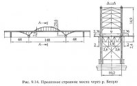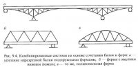 Помимо различного сочетания арок и балок, в комбинированных системах встречаются и другие простые основные системы. Одной из них является сочетание балки и стержневой фермы. Примером может служить конструкция цельносварного пролетного строения расчетной длиной 66 м под железную дорогу, предложенная профессором К.Г. Протасовым (см. рис. 9.4, б и 9.15). Конструкция имеет панель главных ферм 16,5 м […]