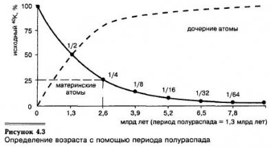 Конкретное время образования горных пород может быть установлено благодаря радиоизотопному анализу, с помощью радиоактивных атомов, Радиоактивность — это самопроизвольный распад радиоактивных атомов, которые встречаются в горных породах (см. рис. 4.1). Атомы распадаются, выделяя элементарные частицы и энергию. Например, уран (238U), распадаясь, испускает частицы и образует свинец (206Pb). Исходный атом урана называют материнским, а продукт радиоактивного […]