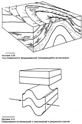 Антиклиналь — это большая дугообразная складка, направленная вверх (см. рис. 5.7), а синклиналь — складка, направленная вниз. В антиклиналях (но не синклиналях) могут образовываться газовые и нефтяные ловушки. Складки типа антиклинальных обнажают породы для эрозионных процессов. Если антиклинали относительно молоды и еще не разрушены эрозией, они выходят на поверхность в виде гребней. Ряд молодых растущих […]