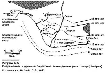 Дельта — это отложения, образовавшиеся при впадении реки в крупный водный массив, например в озеро или океан. Дельта состоит из нескольких типов ландшафтов (см. рис. 6.14). В дельте река обычно подвергается бифуркации, разделяясь на множество русел, называемых рукавами. Рукава формируют территорию низинных болот и топей, затопляемых речной водой во время паводков. В речной дельте происходят […]