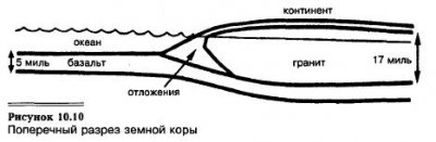 Коренная порода, составляющая земную кору (см. рис. 10.10), является застывшей базальтовой лавой толщиной около 5 миль (8 км). Высота материков значительно больше, так как на базальтовом фундаменте располагается также гранитный слой мощностью около 17 миль (27 км). По сравнению с базальтом плотность гранита невелика, поэтому в недрах Земли он расположен выше. Достоверной информации о том, […]