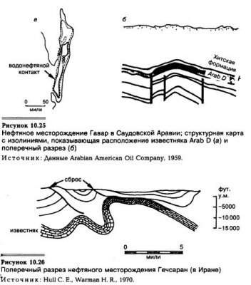 В результате движения литосферных плит на Ближнем Востоке сформировались обширные нефтяные ловушки (см. рис. 10.24), Часть срединно-океанического хребта, расположенная в Красном море, способствует движению Аравийского полуострова на северо-восток к столкновению с Евразийской плитой. Между плитами находится Персидский залив, сжатие которого приводит к образованию в складках ловушек нефти и газа (ближневосточные месторождения), Далее, в направлении на […]