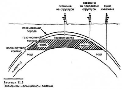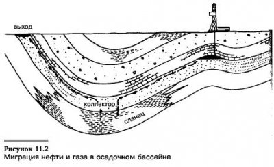 Для того чтобы нефть или газ попали в ловушку, она должна быть сформирована заранее. Если же ловушка образовалась после миграции, естественно, ни нефти, ни газа в ней не будет (см. рис. 11.3). Оказавшись в ловушке, газ и нефть располагаются соответственно своей плотности. Газ, как более легкий, поднимается вверх, образуя газовую шапку, где поры породы-коллектора заполнены […]