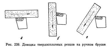 Ввиду высокой твердости, сравнительно большой хрупкости, малой теплопроводности, особенно у сплавов с высоким содержанием карбида титана, и особого значения углов резца заточку и переточку твердосплавных инструментов необходимо производить с гораздо большей тщательностью, чем это требуется для быстрорежущей стали. Предпосылкой для хороших условий резания и высокой стойкости твердосплавных инструментов являются острые и свободные от зазубрин лезвия. […]