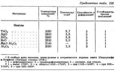 Свойства чистых горячепрессованных TiC и ZrC в сравнении с соответствующими свойствами других горячепрессованных материалов были исследованы Ганглером с сотр. В табл. 169 приведены удельные веса, коэффициенты линейного расширения и значения предела прочности при кратковременных испытаниях. При температуре испытания 980° TiC имеет более высокую прочность при растяжении, чем ZrC, при 1200° соотношение меняется. При оценке данных […]