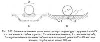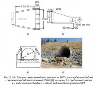 Для сопряжения тела трубы с насыпью и создания наиболее благоприятных условий протекания по МГТ потока воды на входе и выходе из трубы устанавливают оголовки, форма и размеры которых должны обеспечивать наиболее благоприятные условия протекания воды и устойчивость насыпи в зоне трубы. Бровка земляного полотна на подходах к трубам должна быть не менее чем на 0,5 […]